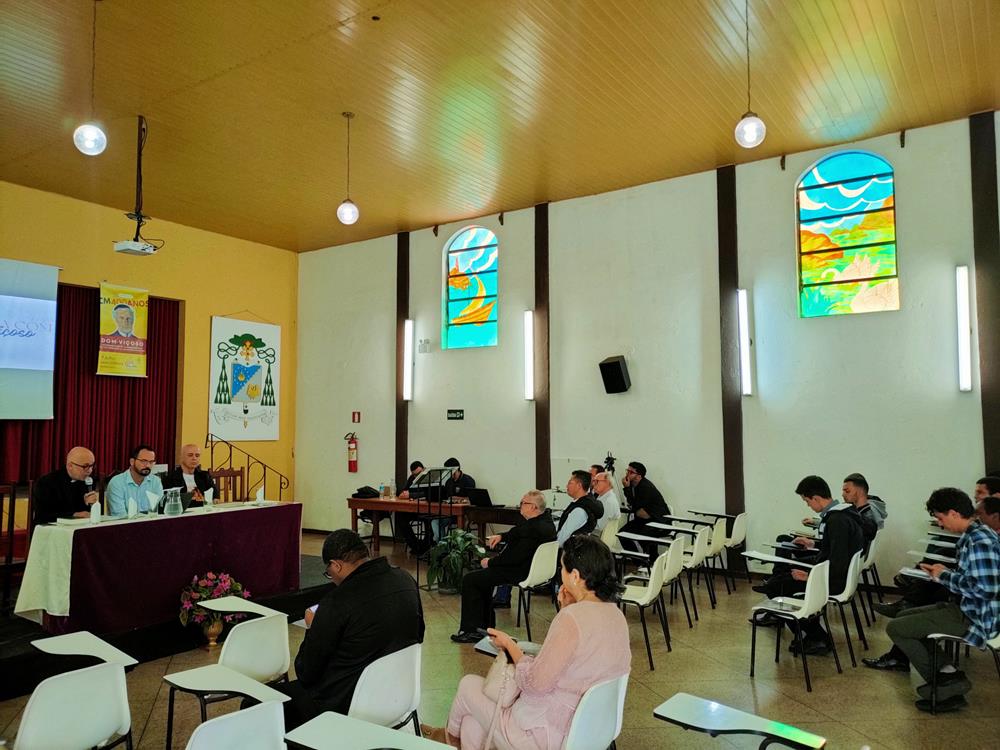 Em seguida, os presentes foram conduzidos ao auditório Dom Oscar de Oliveira, da Faculdade Dom Luciano. Desta forma deu início a “Jornada com Dom Viçoso”. O Padre Cleber Teodósio, CM, foi o moderador da conferência realizada pelo padre Dejair De Rossi, CM, ex-professor do Seminário São José e professor de moral da PUC-MG. O Pe. Dejair, CM, em sua conferência relatou a história dos Padre da Congregação da Missão, os lazaristas, na formação do clero no Seminário de Mariana até 1966, quando a direção do Seminário de Mariana ficou sob responsabilidade dos padres diocesanos. Como também em outros seminários do Brasil, os Lazaristas fizeram e marcaram a história, formando grandes homens para o serviço da Igreja e da sociedade.