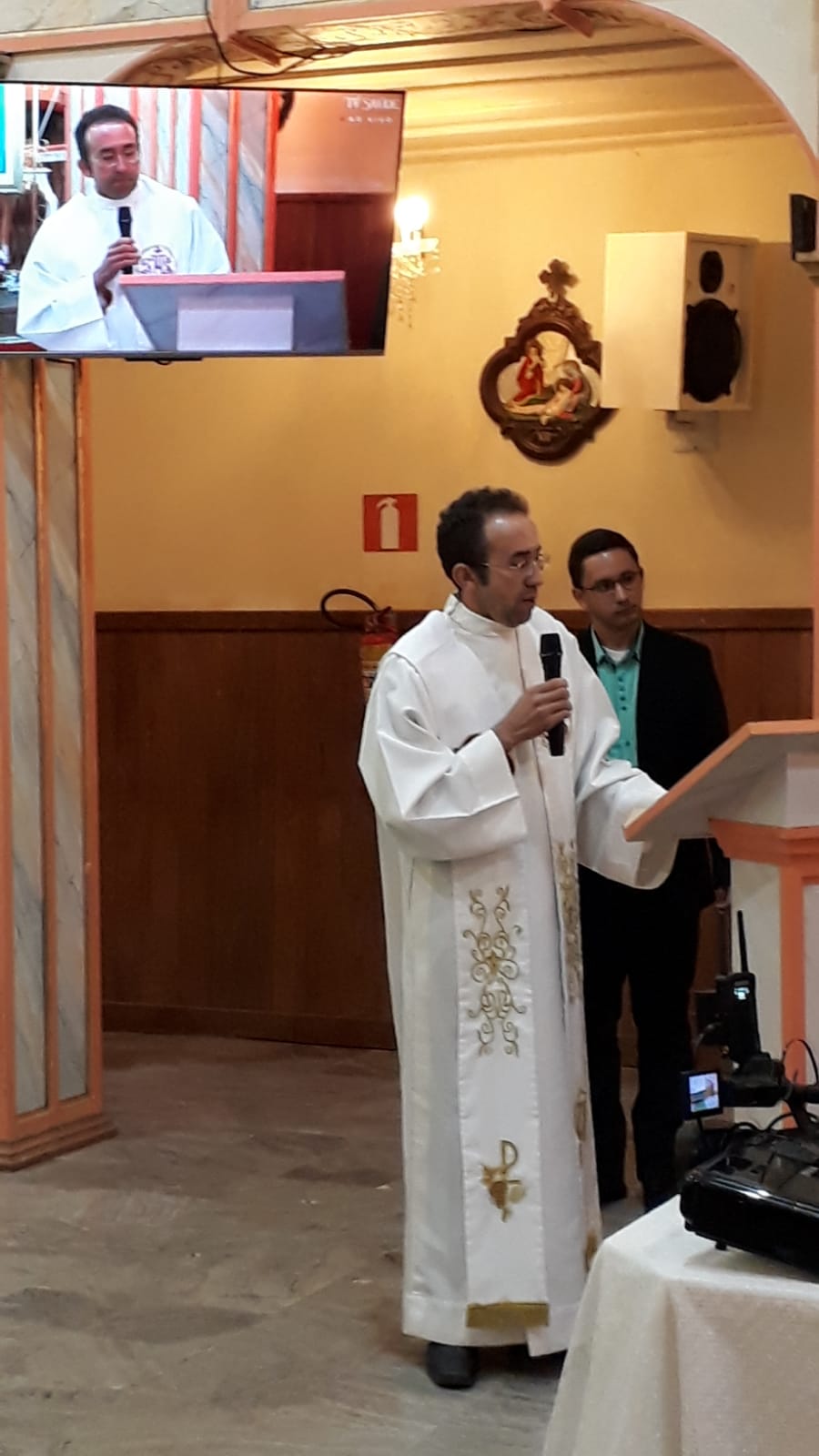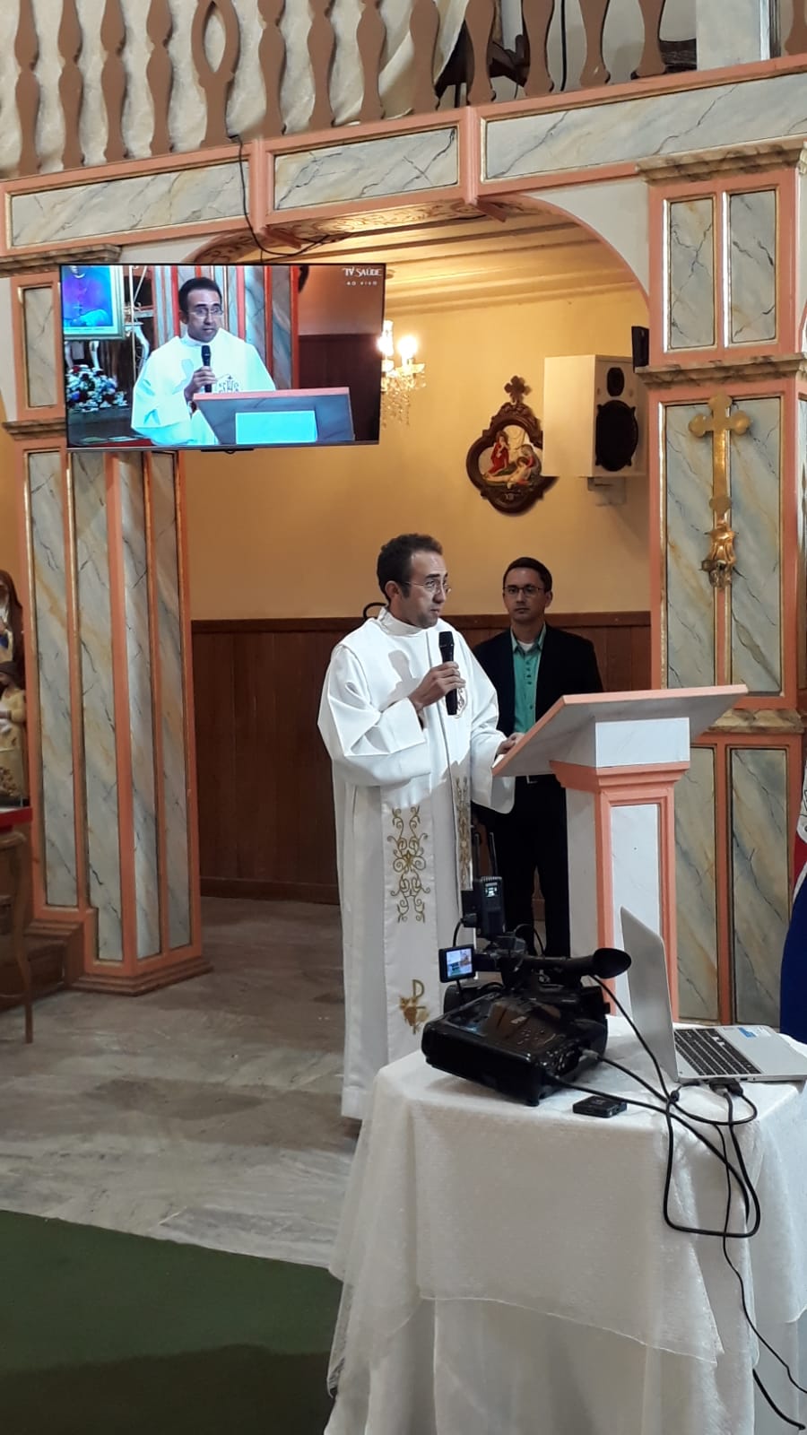 Durante a noite, foi celebrada uma missa presidida pelo Rev. Dom Barroso, bispo emérito da de Oliveira. A celebração contou também com a presença do Pe. Glauber, pároco e reitor do Santuário de Nossa Senhora as Saúde em Dom Silvério, Pe. Fabiano Alves, pároco da paróquia Nossa Senhora da Piedade, em Piedade de Ponte Nova, Pe. Ronaldo Furtado, pároco da paróquia São Sebastião, em Sem Peixe, Pe. José Geraldo Coura, administrador paroquial da paróquia Nossa Senhora da Conceição, em Cachoeira do Brumado e diretor administrativo da FDLM, e Pe. Edvaldo Antonio de Melo, vigário da paróquia São Sebastião, em Itabirito e diretor acadêmico da FDLM.